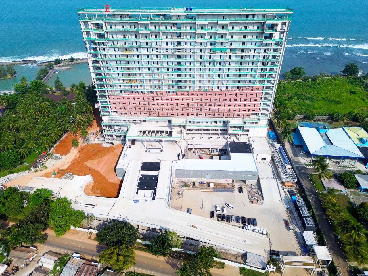 We are excited to build the Mövenpick in Carita. The project is designed by architect Budiman Hendropurnomo from DCM Jakarta. The hotel will cover 35,705 square meters and have 19 floors with 221 guest rooms. One semi-basement will be included to make good use of space.