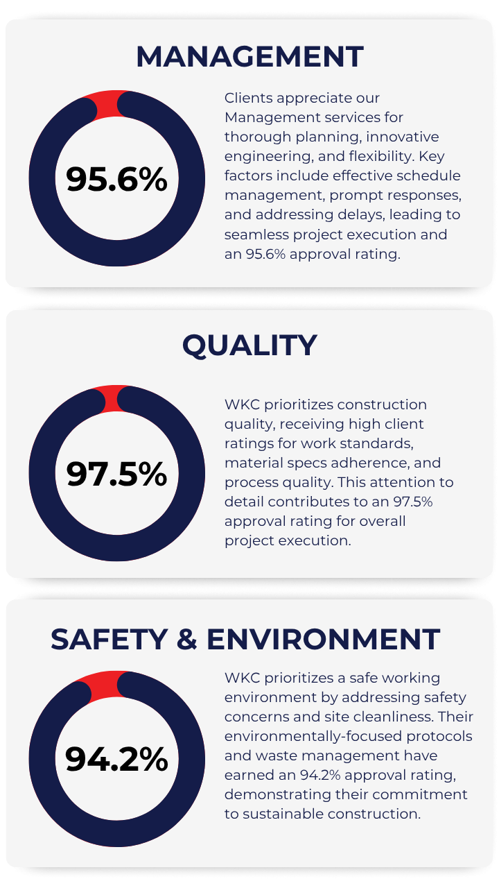 This focus on client satisfaction is not only a testament to our service but also serves as a critical component for the continuous development and improvement of our practices. The valuable feedback we receive drives enhancements in our processes, ensuring we remain competitive and adaptive in the market. By fostering long-term partnerships with repeat clients, we solidify the foundation for the company’s sustainable growth, reinforcing our presence as a trusted leader in the construction industry for years to come.