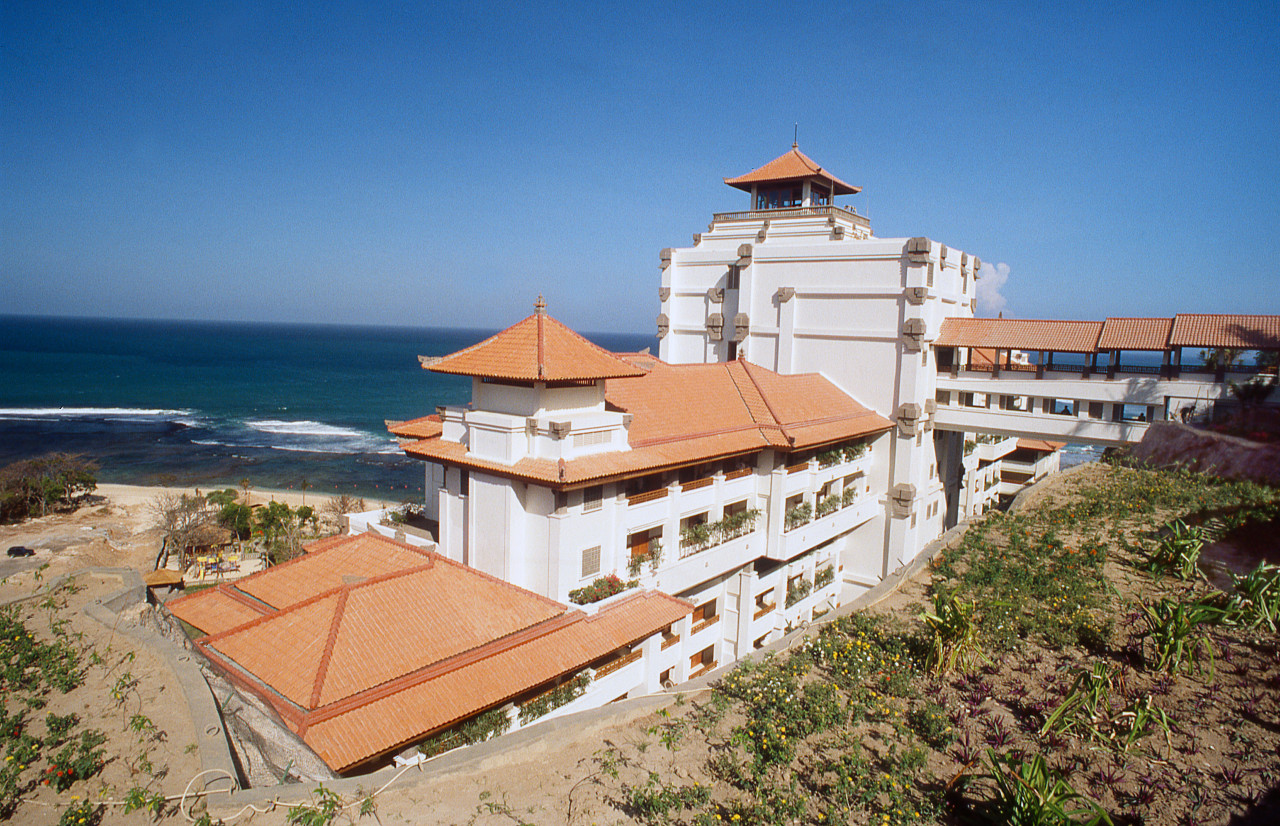 Hotel Nikko Bali, now called Hilton Hotel, is a striking building completed in 1996 by Wijaya Kusuma Contractors. It is a five-star hotel with 407 rooms and covers two hectares of land. The construction included cutting into a cliff to create a beautiful 15-story tower. The project required careful planning and precise work to stabilize the cliff and ensure the building’s safety.